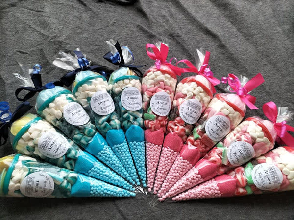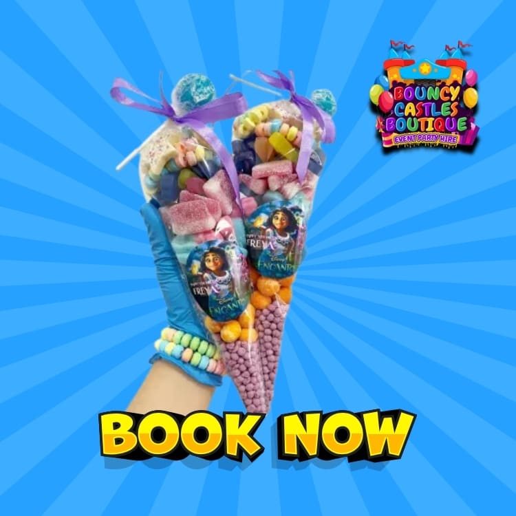 Book sweet cones (customisable) for birthdays, weddings, school events & celebrations. Colourful sweet-filled cones are available across local areas.